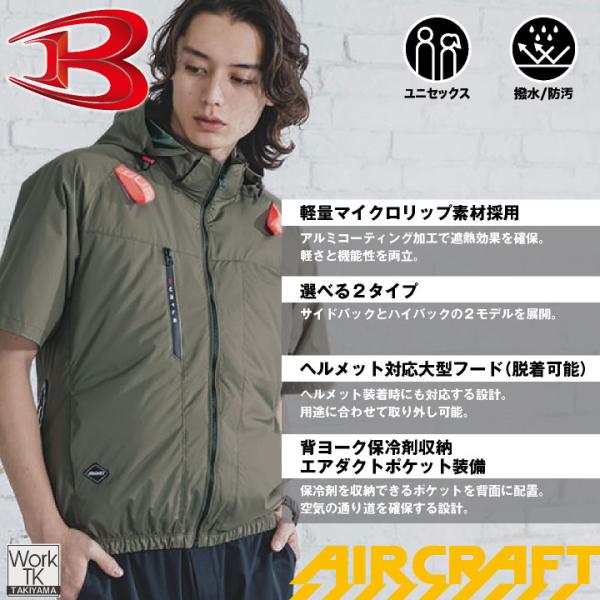 (2026年新作) バートル 半袖空調作業服 ハイバック 単品 エアークラフト 春夏 メンズ レディース 遮熱 フルハーネス BURTLE AIRCRAFT (即日出荷) bt-k002h-t