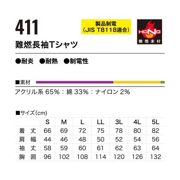 村上被服 難燃長袖Tシャツ S ブラック ブラック S 411-S-20