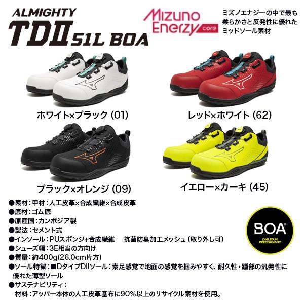 ミズノ 安全靴 オールマイティ TDII51L BOA F1GA2402 作業靴 セーフティシューズ MIZUNO スニーカー F1GA2402