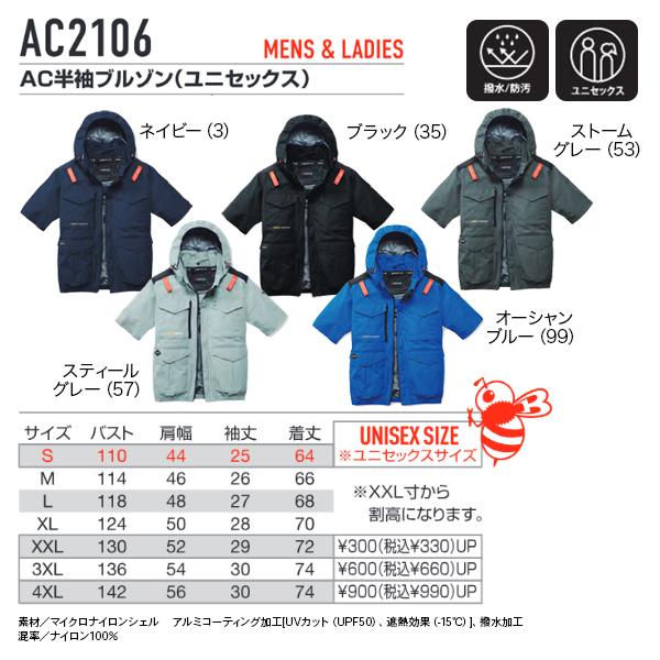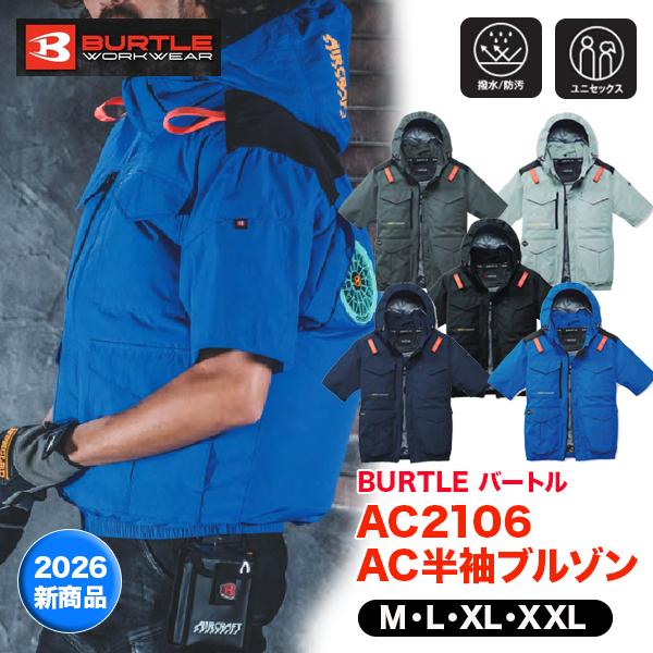 BURTLE エアクラフト AC2106 AC 半袖ブルゾン(ユニセックス)服のみ 空調作業服 半袖 遮熱 保冷剤ポケットあり フルハーネス ハイバックファン 2026 新商品