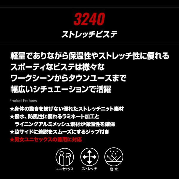 バートル 3240 ストレッチビステ トップス アウター ビステ 防寒着 アウトドア スポーツ 男女兼用 作業着 バートル 2023秋冬新作 ストレッチ 撥水 ユニセックス