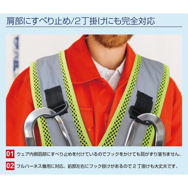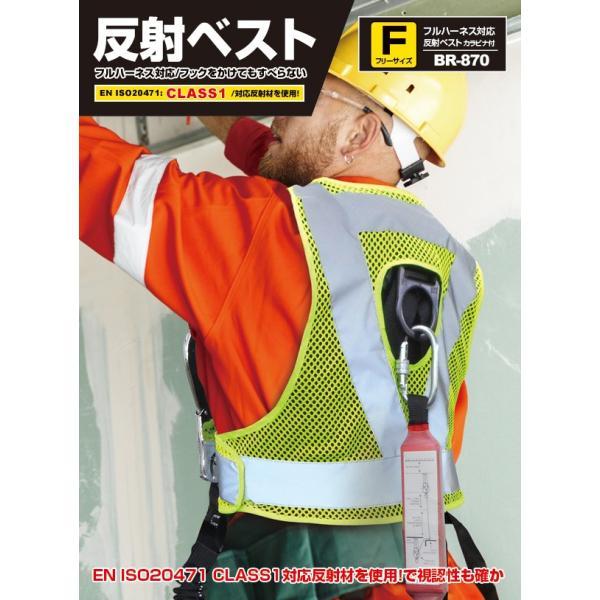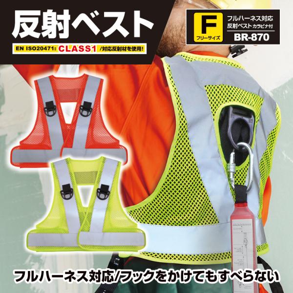 フルハーネス対応 反射ベスト BR-870 カラビナ付き 高視認 現場の安全確保に 肩の内側にすべり止め付 国際規格EN ISO20471