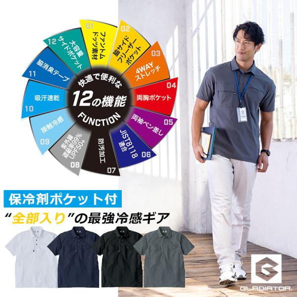 ファントムドッツ 冷感 DRY サイドポケット 半袖ポロシャツ AG3187 男女兼用 ストレッチ 接触冷感 吸汗速乾 UVカット 帯電防止 SS-6L コーコス 3L〜6Lは割増料金