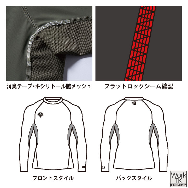 バートル 接触冷感 インナーシャツ 長袖 ストレッチ ナイロン コンプレッション 涼しい 春夏 作業着 作業服 運送業 人気 BURTLE ネコポス 即日出荷 bt-4097