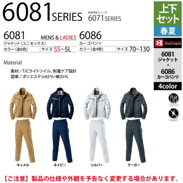 (即日一部あり)バートル BURTLE 作業着 上下セット 6081 と 6086 ジャケットセットアップ SS-LL 作業服 おしゃれ 春夏 JIS適合制電 作業ズボン