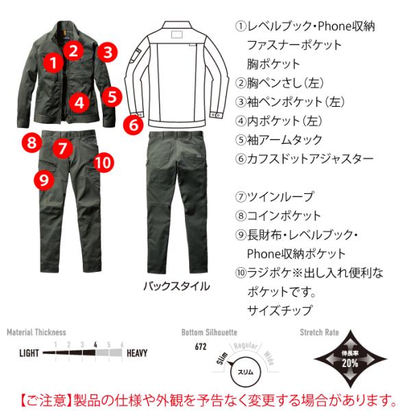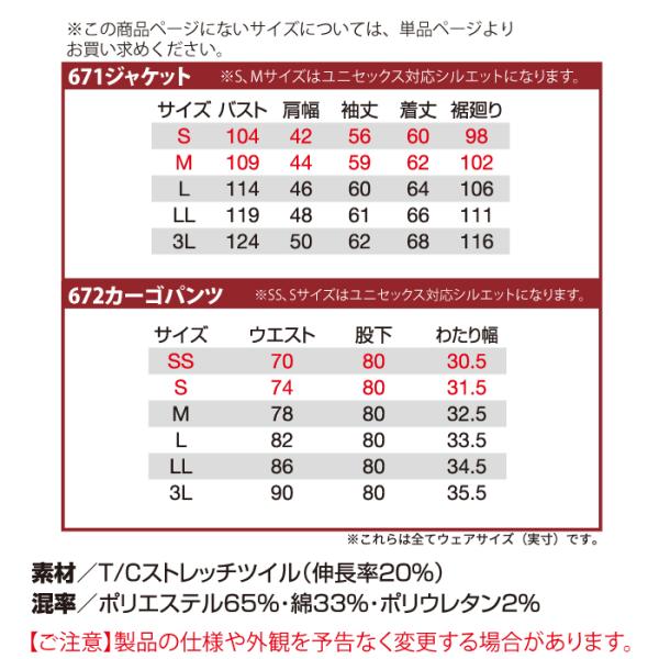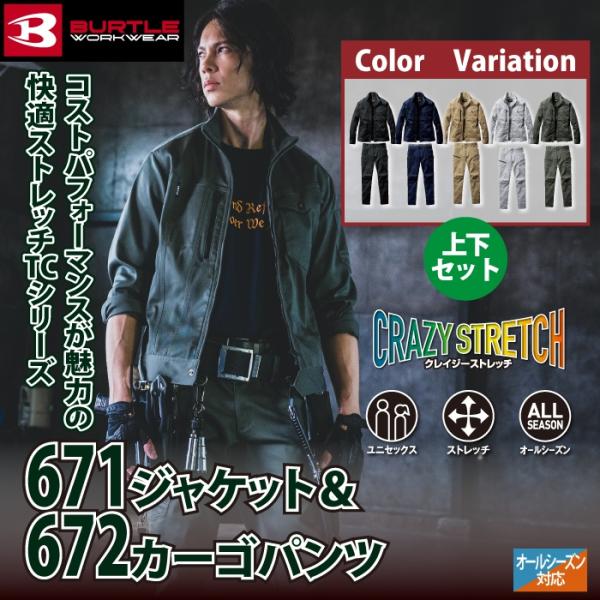 バートル BURTLE 作業着 上下セット 671 ジャケット と 672 カーゴパンツ 作業服 おしゃれ 春夏秋冬 661-662後継モデル