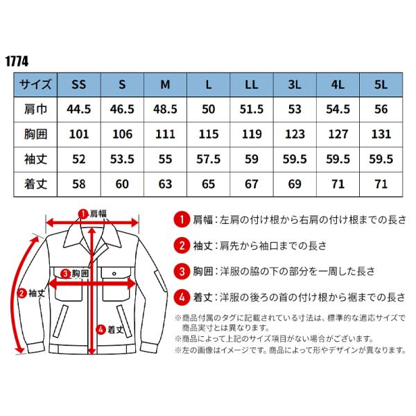 XEBEC 長袖ブルゾン 作業服 春夏用 メンズ 1774 ジーベック 作業着 2024春夏新作 SS-5L