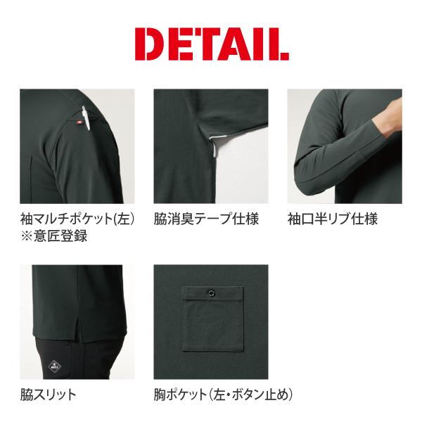 655 ユニセックス 長袖シャツ ロングTシャツ ストレッチ 吸汗速乾 消臭 オールシーズン 鹿の子 軽量 胸ポケット 作業服 現場 カジュアル