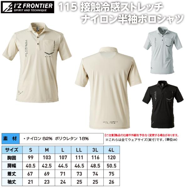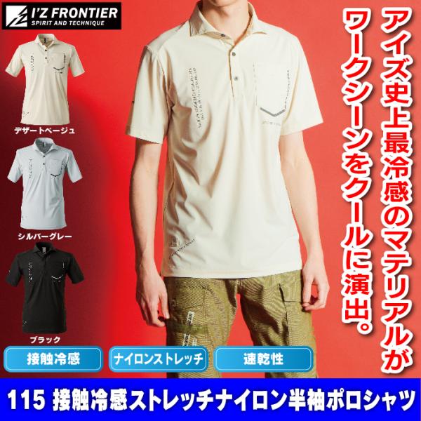 アイズフロンティア 作業服 115 接触冷感ストレッチナイロン半袖ポロシャツ S-4L 春夏 作業着 おしゃれ I'ZFRONTIER