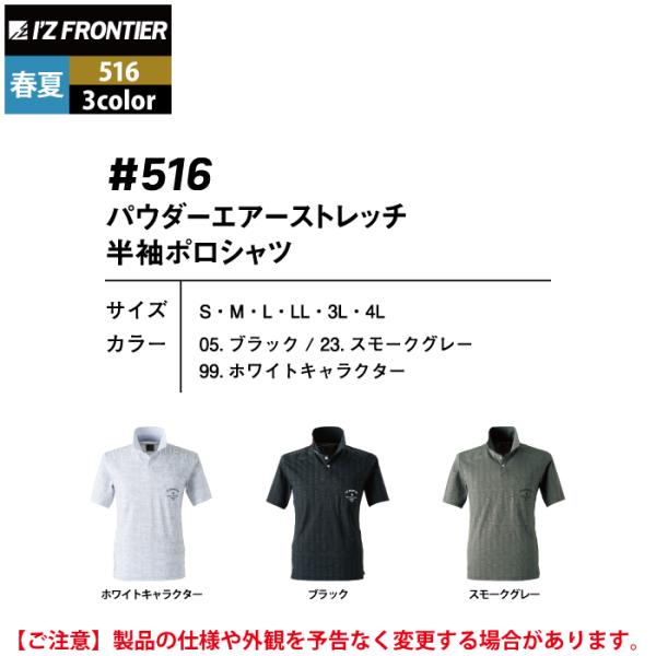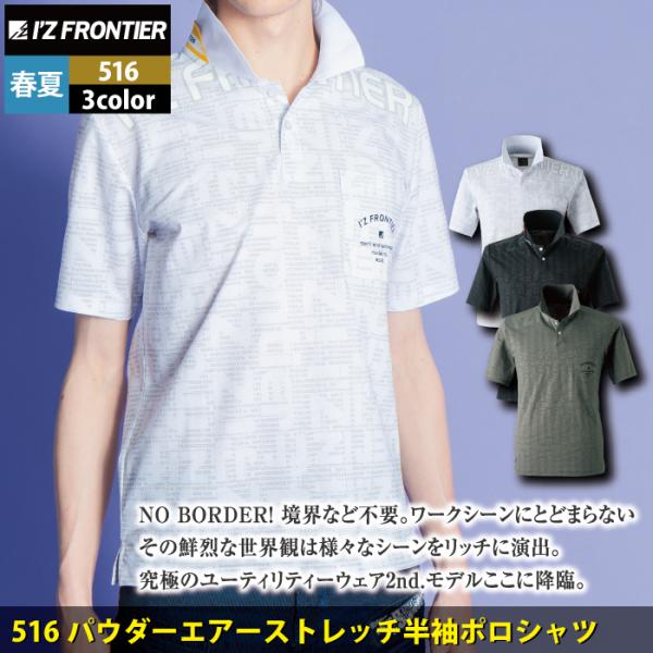 アイズフロンティア 作業服 516 パウダーエアーストレッチ半袖ポロシャツ S-4L 春夏 作業着 おしゃれ I'ZFRONTIER