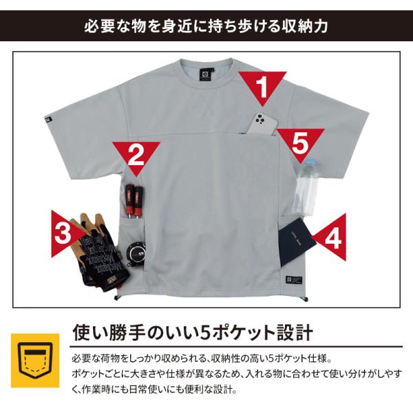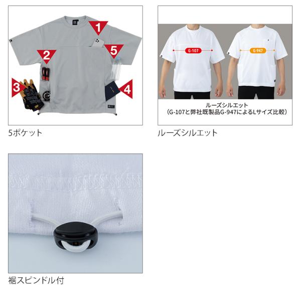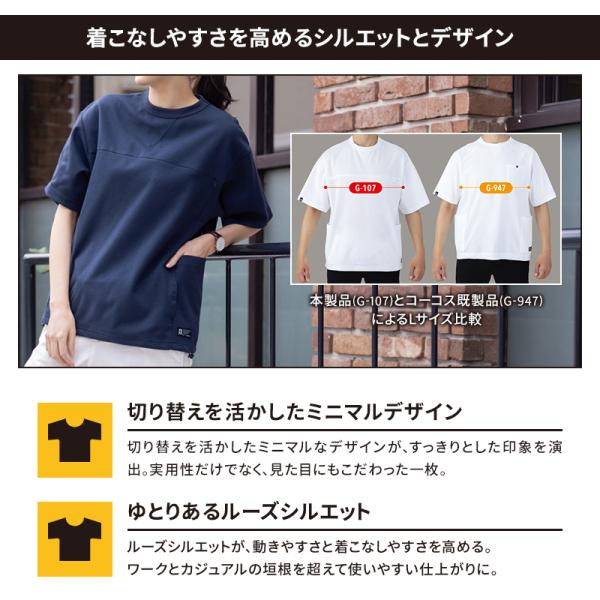 グラディエーター 作業着 Tシャツ 半袖 G-107 フェイスコットンDRY 5ポケット 春夏用 男女兼用 コーコス XS-3XL【2026春夏新作】