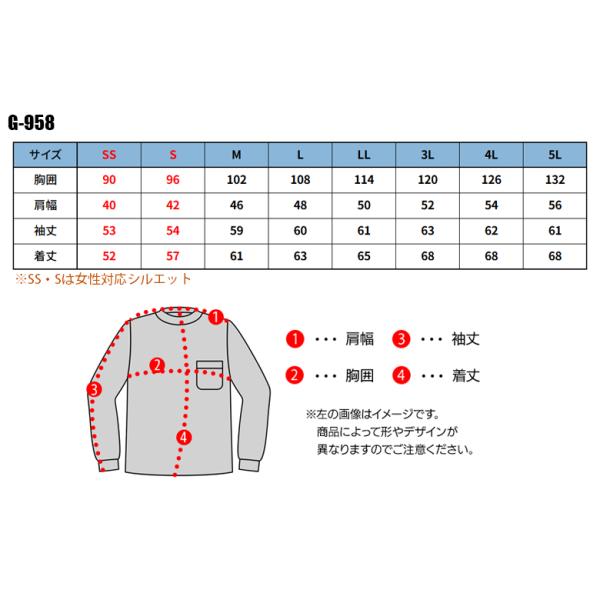 作業服 グラディエーター 長袖 Tシャツ G-958 綿100% 男女兼用 通年 消臭効果 5ポケット 作業着 SS-5L