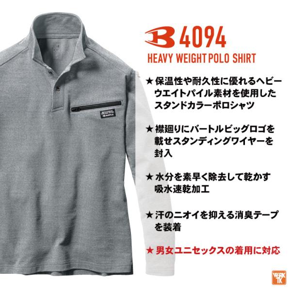 バートル 長袖 ポロシャツ ストレッチ 秋冬 厚手 ドライ 吸汗速乾 パイル素材 メンズ レディース 仕事服 作業着 カジュアル BURTLE (即日出荷) bt-4094