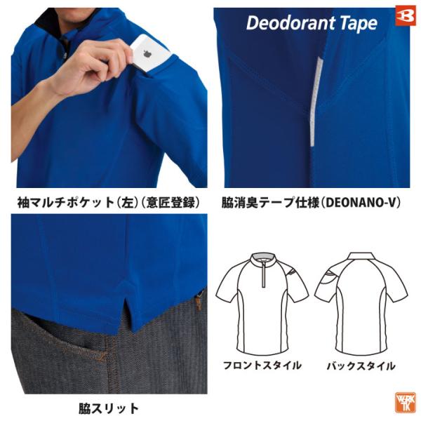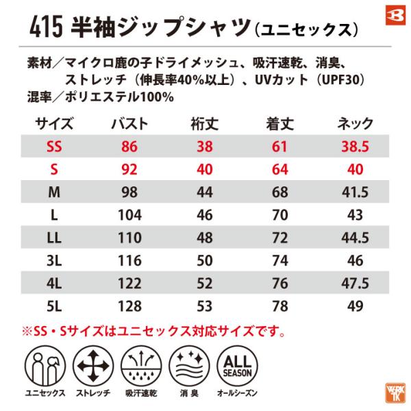 バートル 半袖シャツ 春夏 半袖ジップシャツ ドライメッシュ 作業服 作業着 BURTLE おしゃれ メンズ レディース bt-415