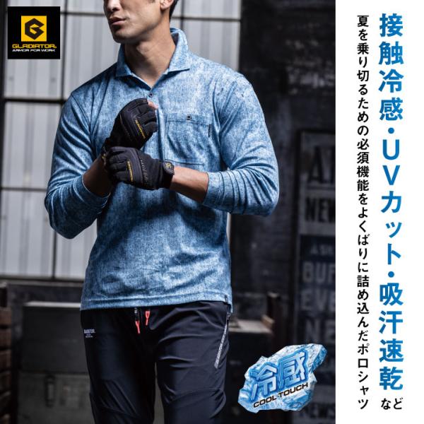 グラディエーター ポロシャツ 長袖 接触冷感 吸汗速乾 UVカット 涼しい 春夏 作業着 作業服 スポーツ メンズ レディース 大きいサイズ コーコス cc-g1688