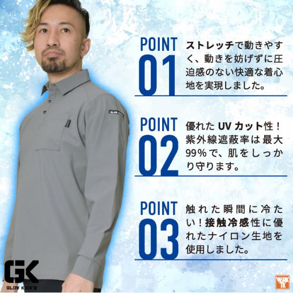 ケイゾック 冷感長袖ポロシャツ 春夏 上着 メンズ レディース 超接触冷感 UVカット ストレッチ Q-max0.3以上 暑さ対策 涼しい (ネコポス) (即日出荷) kc-gkk104