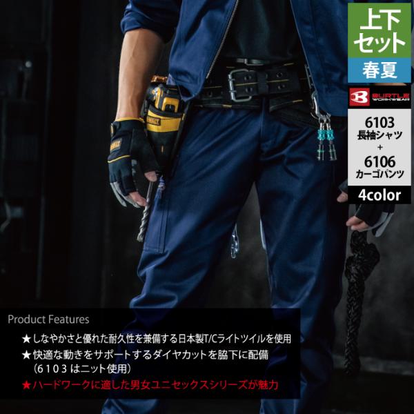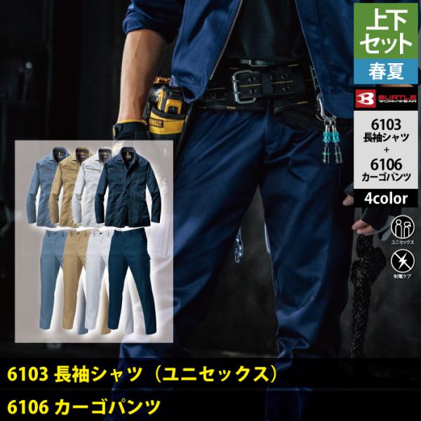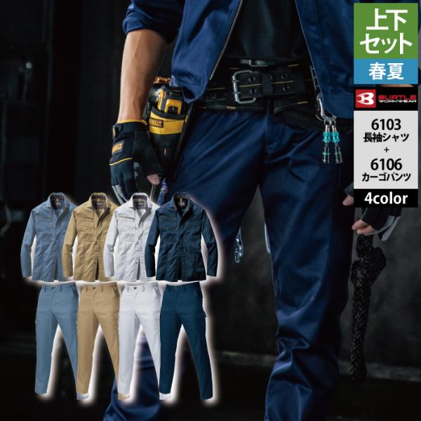 バートル BURTLE 作業着 上下セット 6103長袖シャツと6106カーゴパンツ SS-LL 快適 作業服 おしゃれ 春夏 作業ズボン