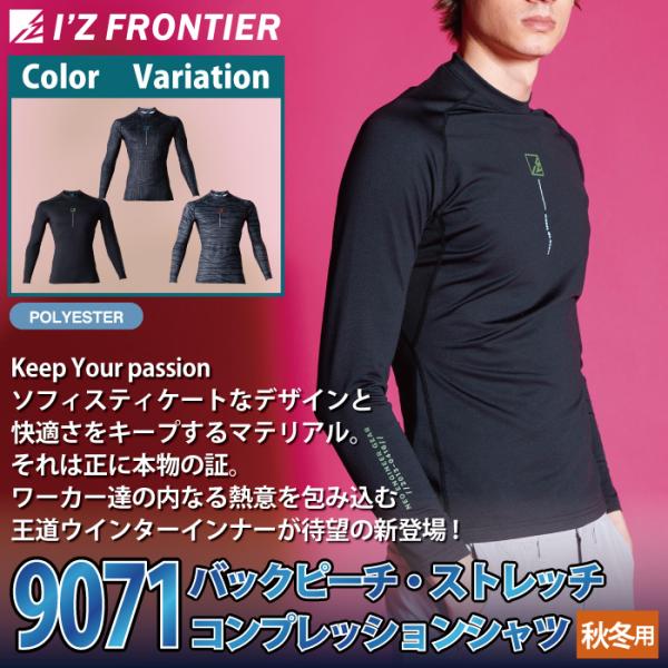 アイズフロンティア 作業服 9071 バックピーチストレッチコンプレッションシャツ S-XXL 秋冬 作業着 おしゃれ I'ZFRONTIER