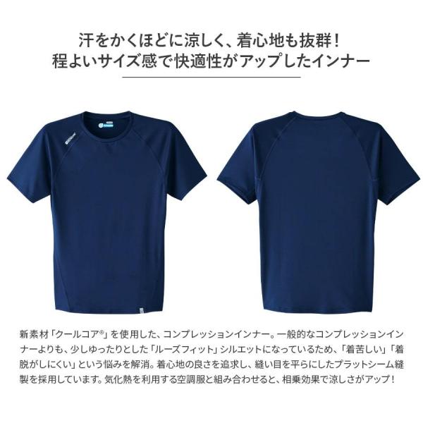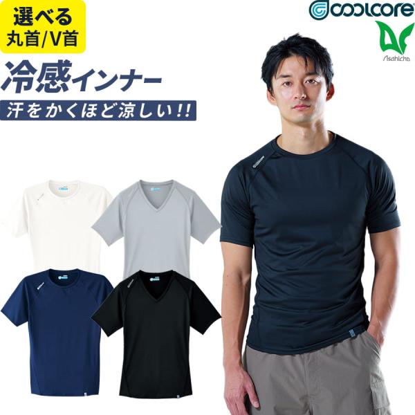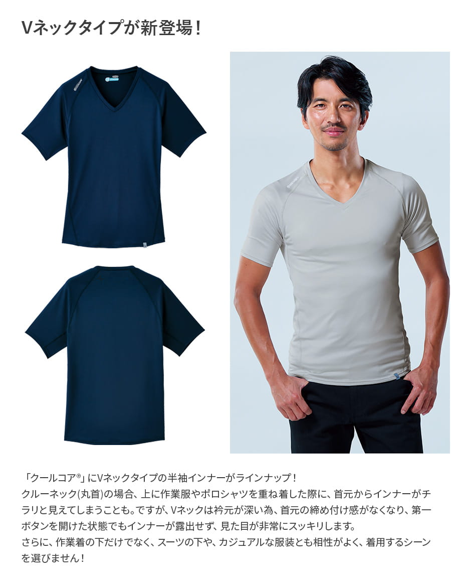 作業服 COOLCORE(R) クールコア(R) 無地 ドライ 半袖 クールインナー 0043 0045 丸首 Vネック メンズ ストレッチ 冷感素材 吸汗速乾 ややゆったりめ 春夏用