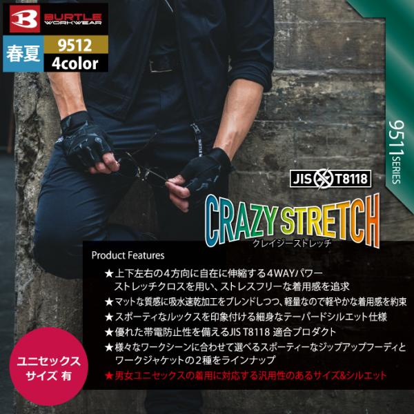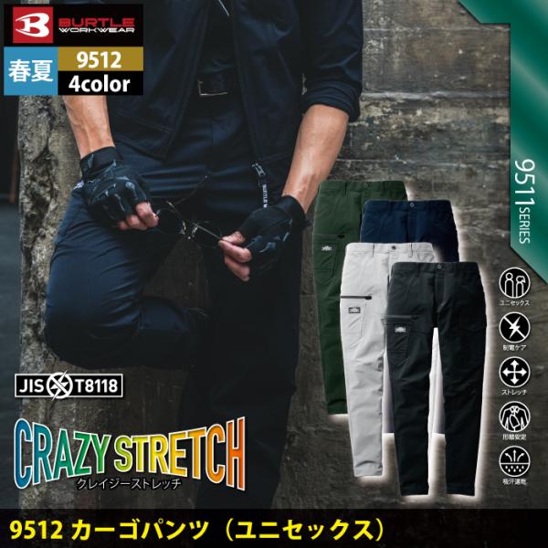 バートル BURTLE 作業着 作業ズボン 9512 カーゴパンツ S-LL 春夏 作業服 おしゃれ ストレッチ 制電 T8118 吸汗速乾
