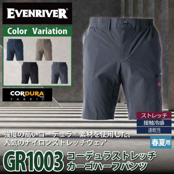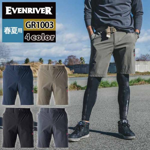 イーブンリバー EVENRIVER 作業服 作業ズボン 2025春夏新作 GR1003 コーデュラストレッチカーゴハーフパンツ S-4L 作業着 おしゃれ