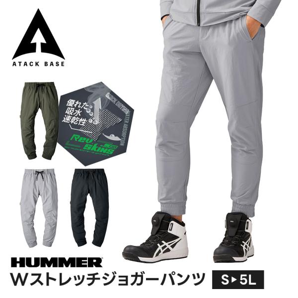 HUMMER 作業服 ズボン ストレッチ 作業着 メンズ 大きいサイズ ジョガーパンツ おしゃれ パンツ 作業パンツ 総ゴム 運動着 スポーツ ハマー アタックベース 爆買