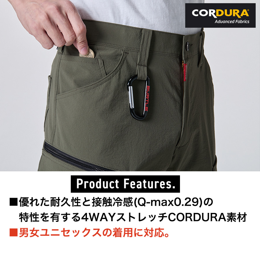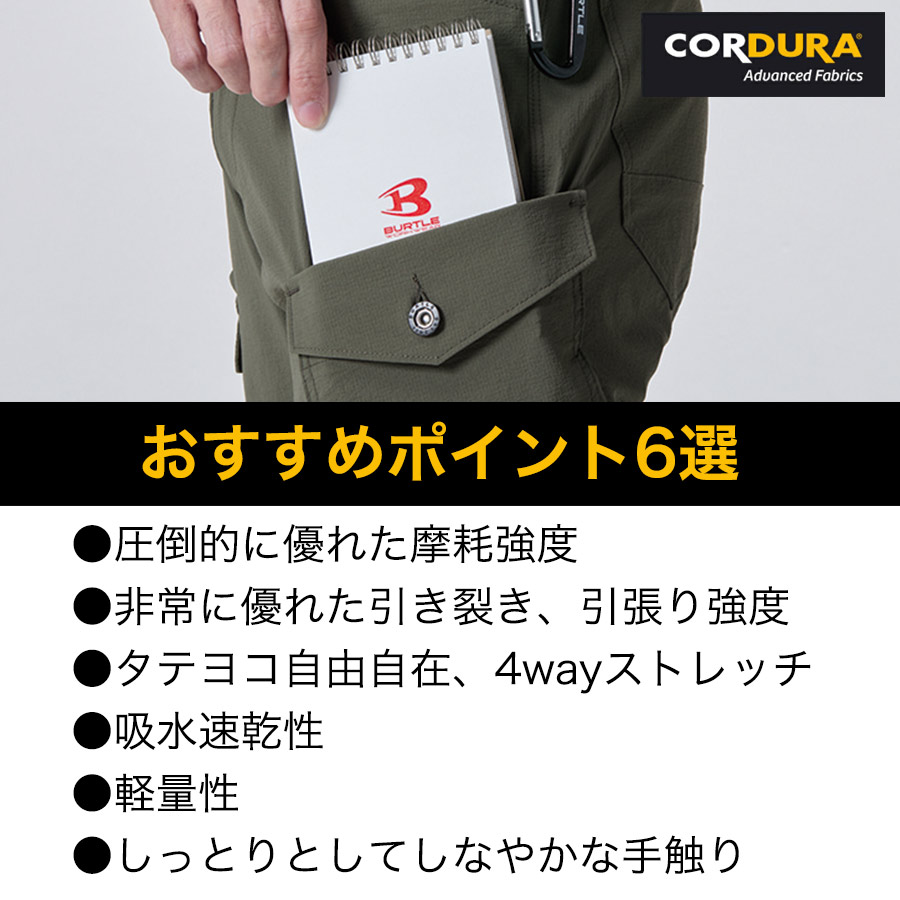 バートル CORDURAナイロンカーゴパンツ 5032 メンズ 作業服 作業着 作業ズボン 接触冷感 ストレッチ 吸汗速乾 コーデュラ BURTLE