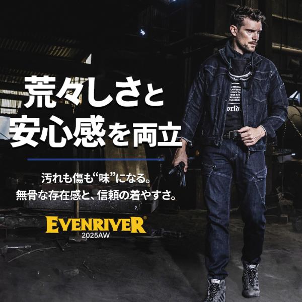 作業ズボン 作業服 作業着 デニム カーゴパンツ USD1102 ストレッチ 秋冬用 イーブンリバー EVENRIVER メンズ S(74)-5L(100)【2025秋冬新作】
