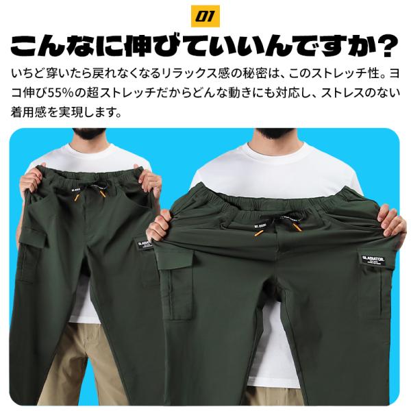 作業服 ズボン カーゴパンツ ストレッチ 吸汗速乾 通年用 グラディエーター G-2005 男女兼用 作業着 XS-3XL
