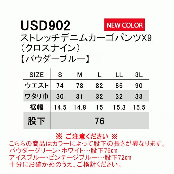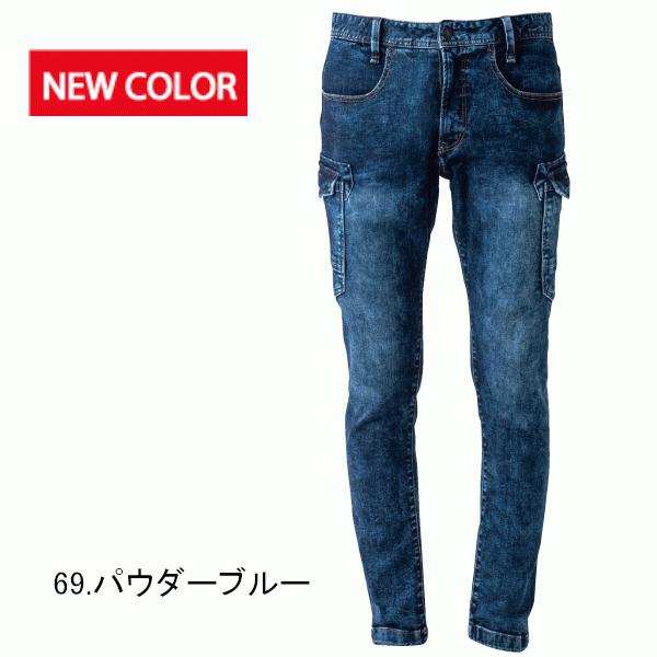 新色 イーブンリバー 作業服 ストレッチデニムカーゴパンツX9 USD902 作業着 パウダーブルー