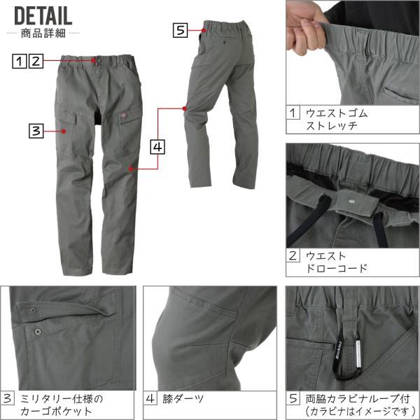 Dickies ディッキーズ D-2915 カーゴパンツ ノータック ストレッチ 作業ズボン 通年 多ポケット メンズ ヘリンボン
