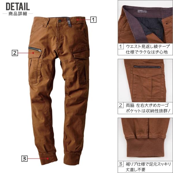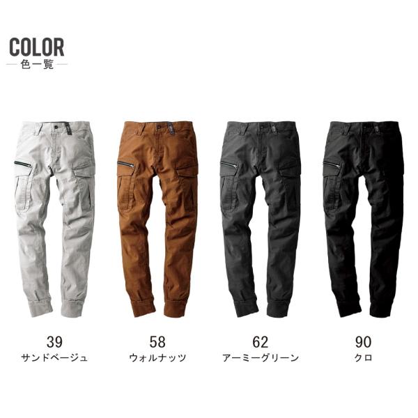 ジーベック 作業ズボン 秋冬 リブ付き カーゴ パンツ 丈夫で肉厚なストレッチ生地 現場服 2176