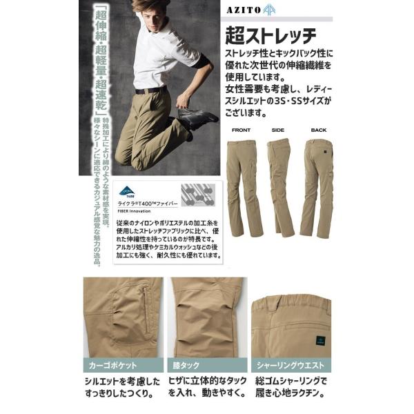 作業服 ストレッチカーゴパンツ ノータック アジト AZITO メンズ レディース 女性用 軽量 伸縮 速乾 オールシーズン 作業着 作業ズボン アイトス AITOZ AZ-7843