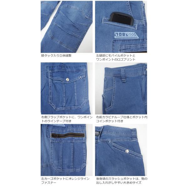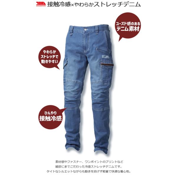 作業服 デニムカーゴパンツ ノータック 8970-219 寅壱 ストレッチ 接触冷感 軽量 春夏 メンズ 作業着 作業ズボン