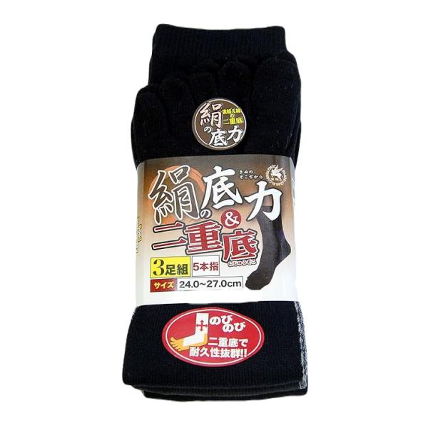 富士手袋 155 絹の底力 二重底 5本指 かかと付き 3足組 ブラック 24-27cm 作業用ソックス