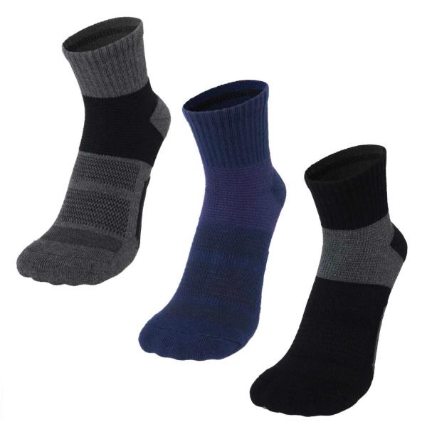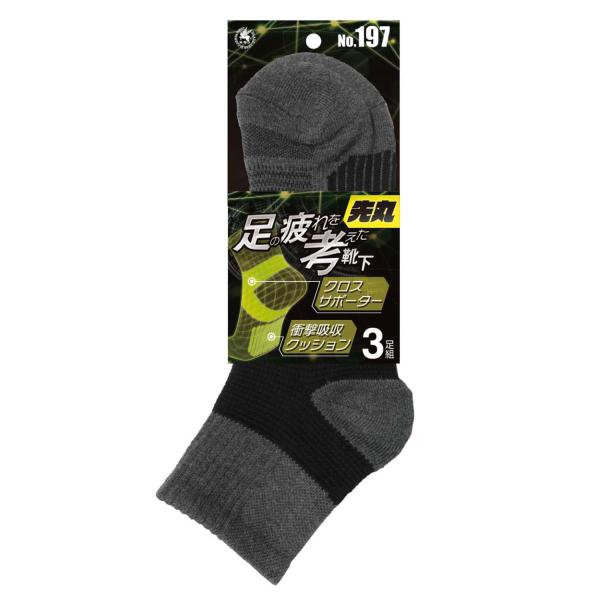 作業用靴下 安全靴 ソックス 先丸 セミショート丈 3足組 25-27cm アソート 裏パイル 吸汗 衝撃吸収 クロスサポーター 土踏まずクッション No.197