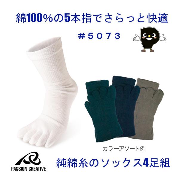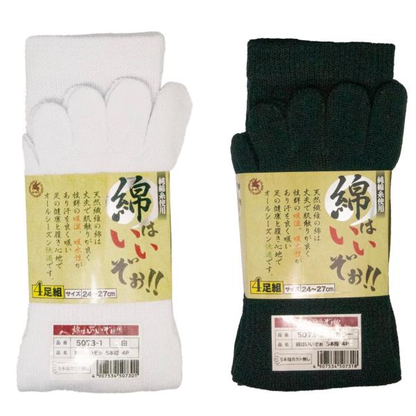 5本指 靴下 綿100% メンズ 4足組 24-27cm 白 カラーアソート 選べる 土踏まずサポート 吸汗 吸水 オールシーズン 綿はいいぞぉ 天牛 富士手袋工業 5073-1 5073-2