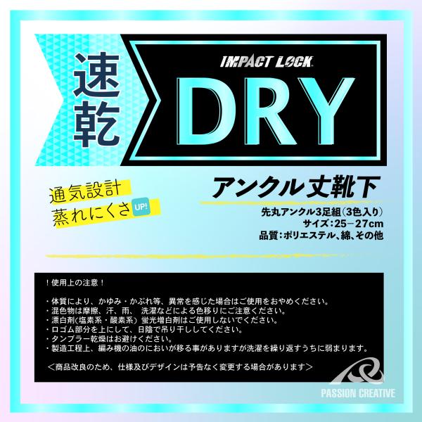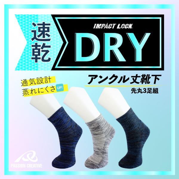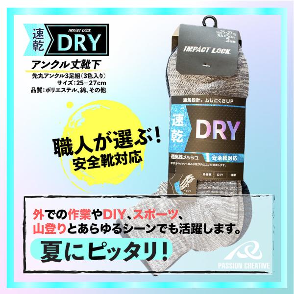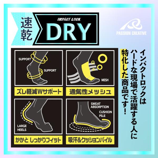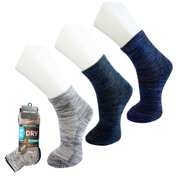 安全靴対応 靴下 メンズ 先丸 クルー丈 3足組 25-27cm 吸汗速乾 DRY 通気性 メッシュ 底パイル クッション Wサポート ズレ防止 ムレ軽減 IMPACT LOCK CA-256