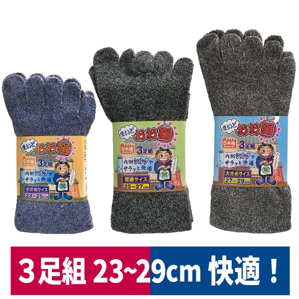靴下 5本指 まいどおお絹 3足組 シルク フィット 福徳産業 3041 3042 3043