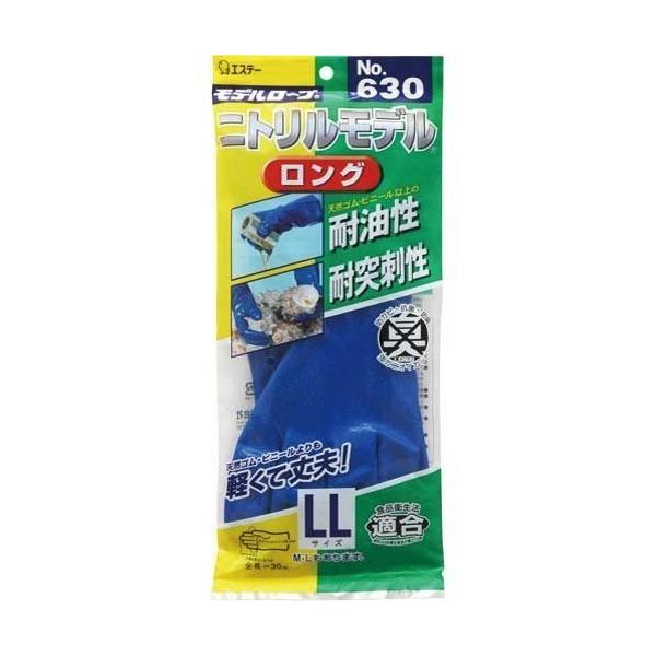 【10双販売】エステートレーディング ニトリル作業用手袋 軽くて丈夫 モデルローブ ニトリルモデルロング630 ブルー