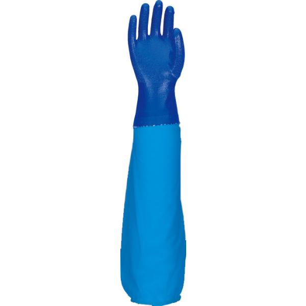 【1双販売】エステーPRO 腕カバー付き手袋 ニトリルゴム製 全長60cm 食品衛生法適合 No.660二トリルモデル 腕カバー付手袋 ブルー