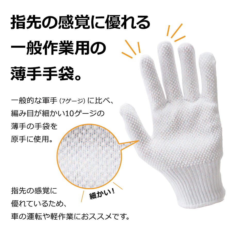 プロノ 純綿薄手ボツ軍手10双組 PR-2034 オリジナル 手袋 滑り止め 10ゲージ 薄手 作業 綿100% コットン Prono
