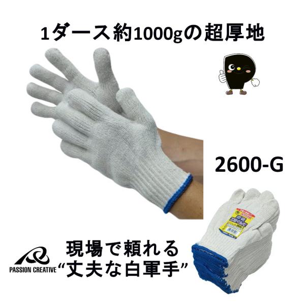 天牛 富士手袋工業 綿特 工場ぐんて 2600-G 超厚地 7ゲージ 白軍手 12双(1ダース)厚手 丈夫 作業用