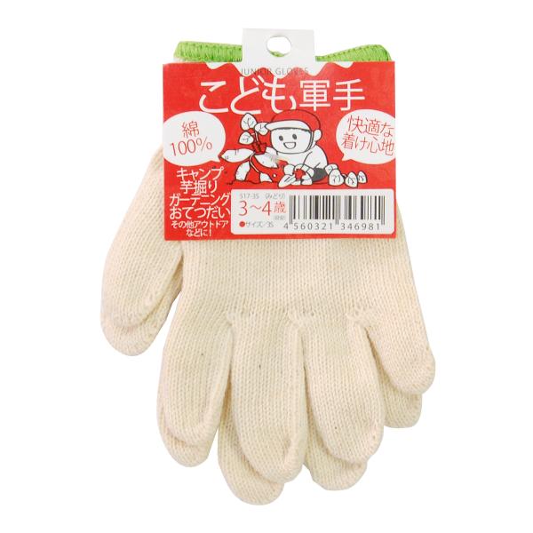 子ども軍手 #517-G|綿100% チルドレン手袋 3歳〜9歳対応 作業手袋・DIY・ドライブ・園芸に最適(1双組)