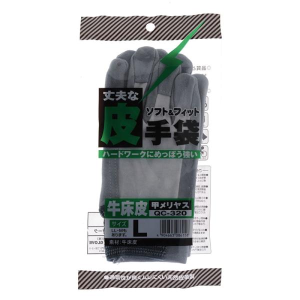 革手袋 作業用 牛床革 甲メリヤス QC−320 通気性 中部物産貿易