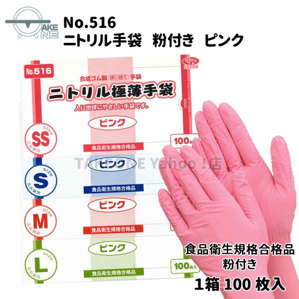 使い捨て ニトリル ピンク 薄手 粉付き手袋 ニトリル極薄手袋 エブノ 1箱 100枚入『10箱』516 カラーニトリルゴム手袋 食品調理 介護用手袋 食品衛生法適合品