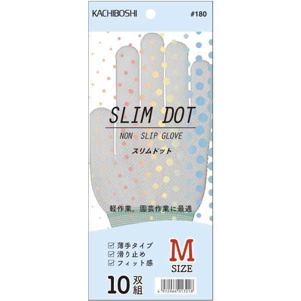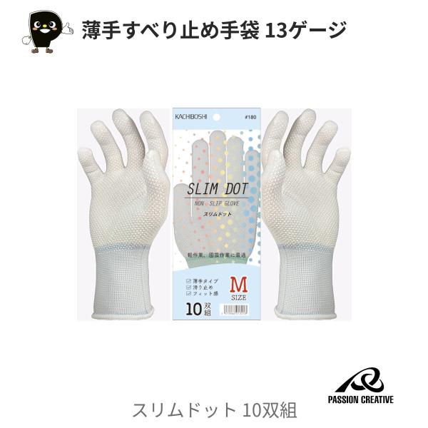 薄手すべり止め手袋 13ゲージ スリムドット #180 10双組|高伸縮 ポリエステル 軽作業・梱包・仕分用 作業手袋