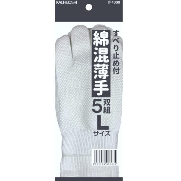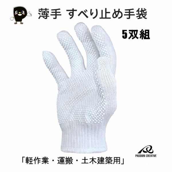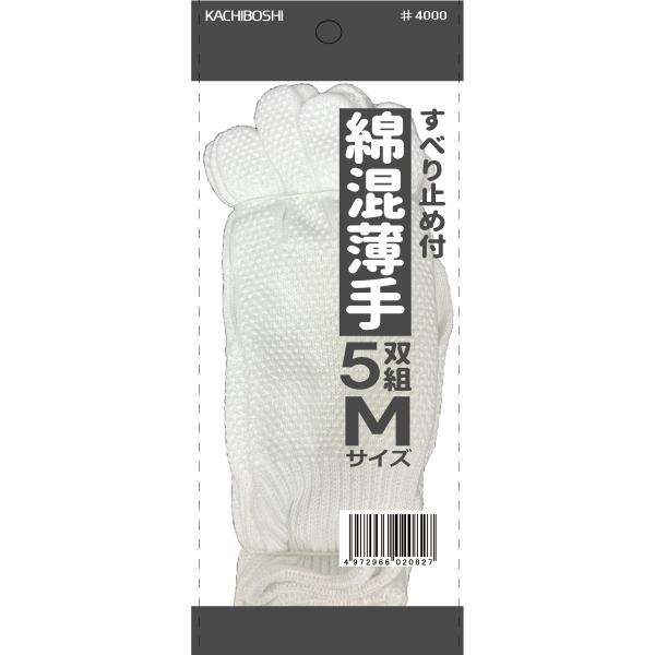 綿混 薄手 すべり止め手袋 5双組 #4000|10ゲージ 通気性 吸汗性 PVC滑り止め 軽作業・運搬・土木建築用(M・L)