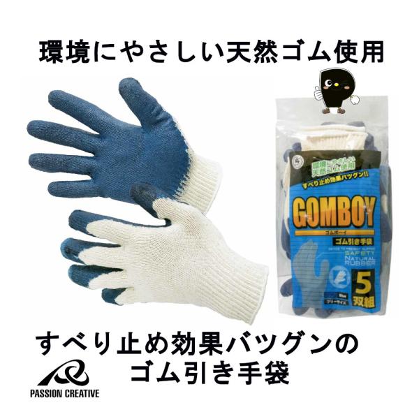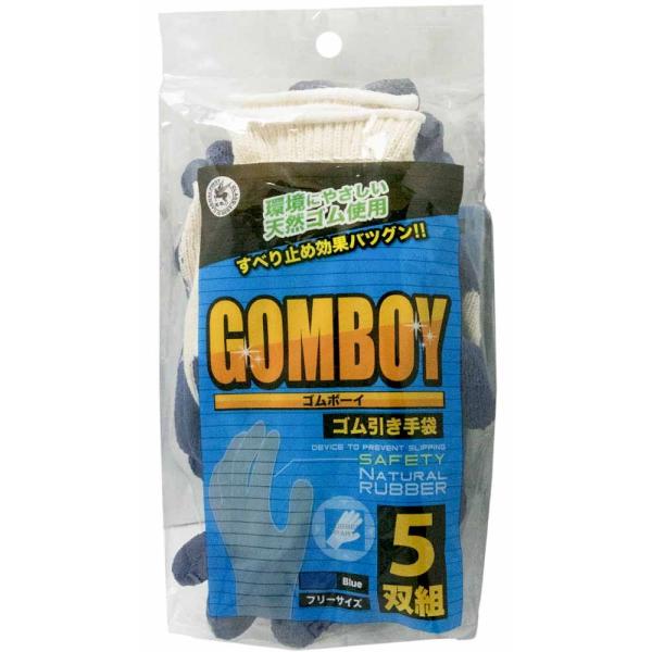 天牛 富士手袋工業 ゴムボーイ ゴム引き手袋 522-1 5双組 天然ゴム すべり止め ブルー フリー 作業用 手袋