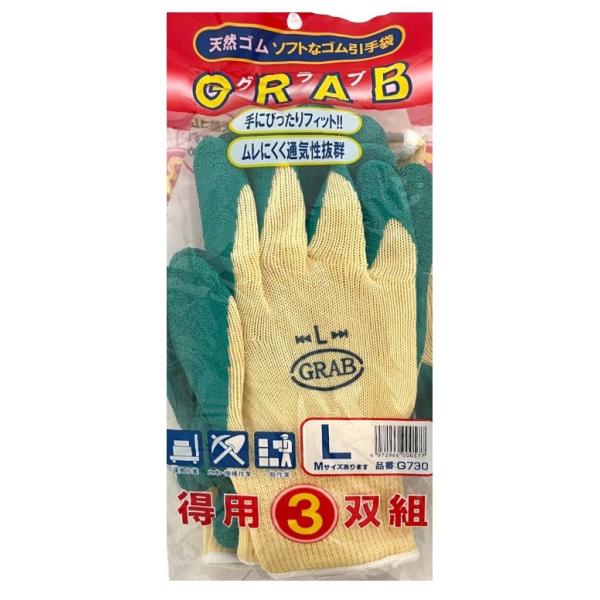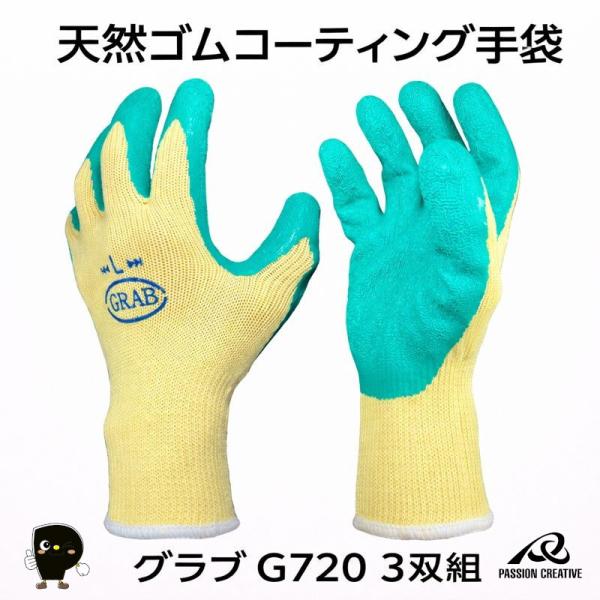勝星産業 GRAB グラブ G720 天然ゴムコーティング手袋 3双組 10ゲージ 薄手 高グリップ すべり止め 通気性 ムレにくい 農作業 倉庫 ガーデニング M L
